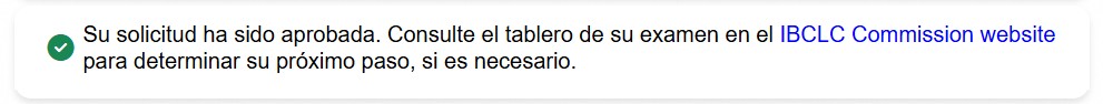 Si aprobó, también podrá ver la información de su credencial de IBCLC en la página “Mis credenciales.” Obtenga más información aquí.